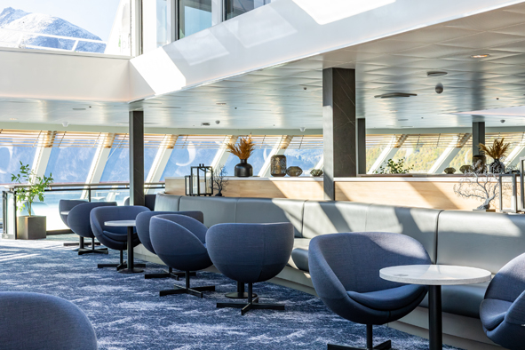 Havila Voyages heeft ervoor gezorgd dat je in de vele gemeenschappelijke ruimtes verdeeld over het schip kunt