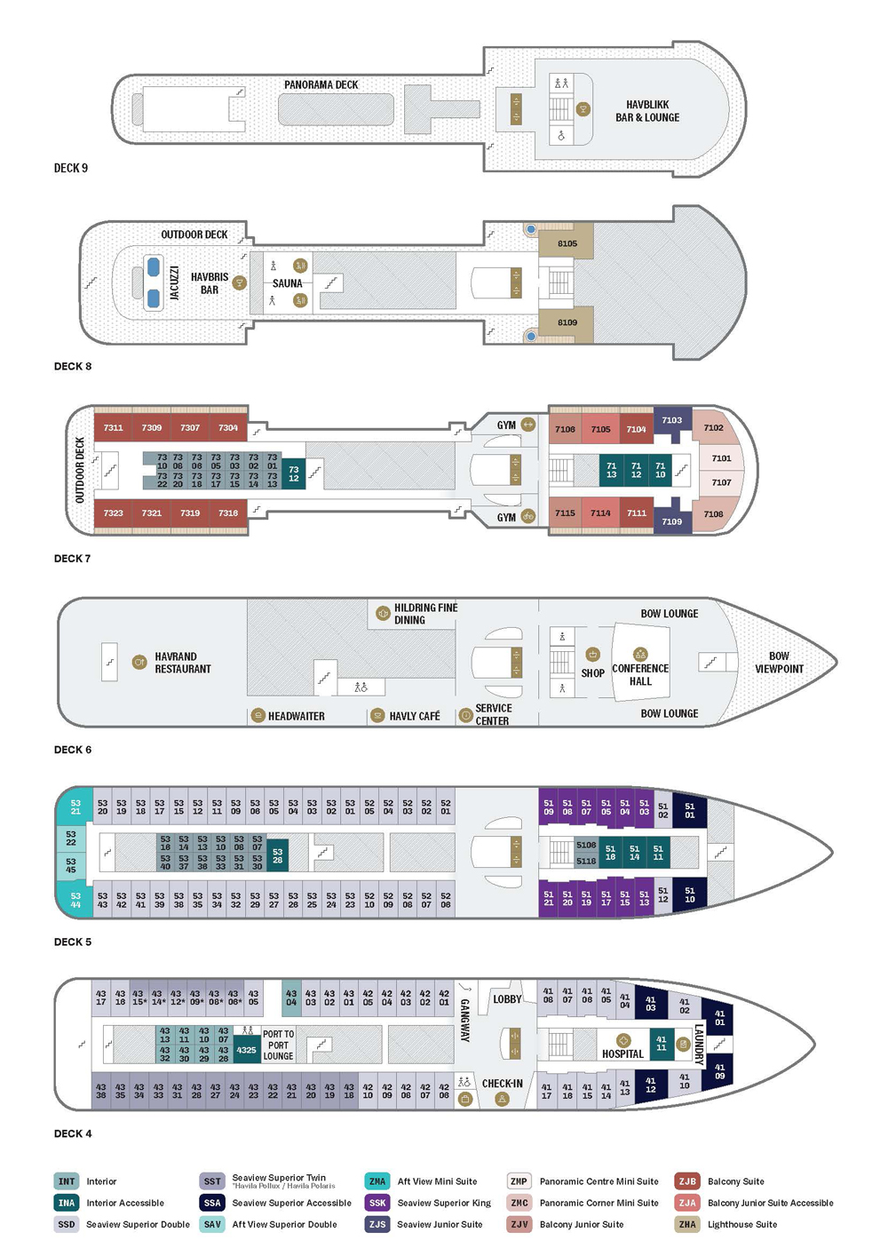 Op dek acht vind je bovendien nog een jacuzzi waar je buiten kunt genieten terwijl je naar het noorderlicht kijkt of bij middernachtzon een bad neemt.