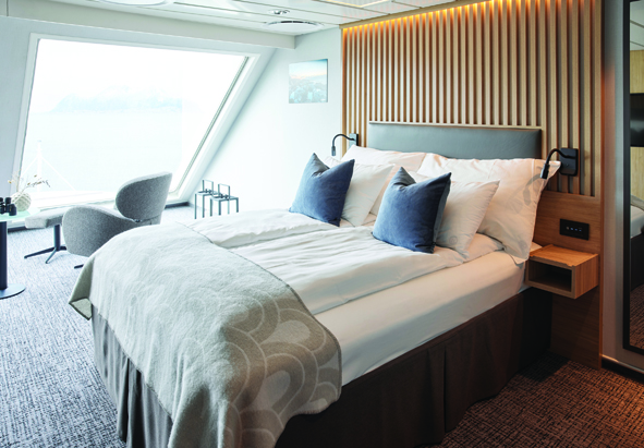 Havila Voyages nodigt je uit aan boord - met grote hutten en kamers om lekker te slapen 's nachts.
