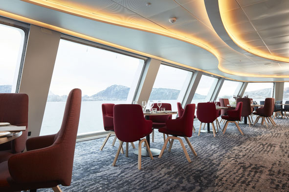 À bord de Havila Voyages, vous goûtez donc aux meilleurs produits norvégiens, transformés par une gastronomie de haut niveau et servis dans des restaurants et des endroits qui reflètent la rude nature que vous voyez autour de vous.